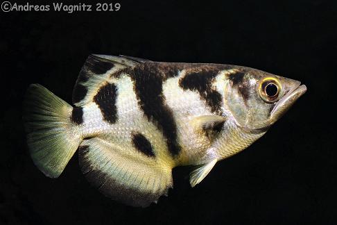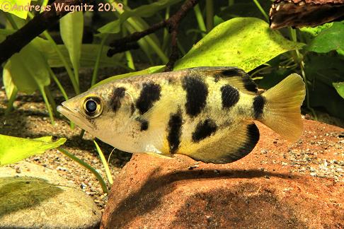 Toxotes siamensis mit dem typischen Zeichnungsmuster. |